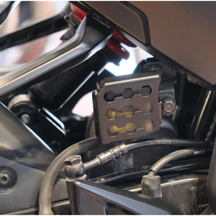 Bajaj Pulsar N250 model motosikletlerin arka fren hidrolik kutusunu darbelerden ve çizilmelere karşı koruyan Moto Üçel koruma parçasıdır. Yüksek dayanıklılığa sahip malzemeden üretilmiş olup, günlük kullanımlarda ortaya çıkabilecek olası hasarları önlemeye yardımcı olur. Ürün, montaj aşamasında delme işlemi gerektirmez ve plug&play tasarımı sayesinde kolayca ve hızlıca montaj sağlanabilir. Detaylı işçilik ve yüksek uyumluluk ile tasarlanmış olan bu koruma, fren hidroliği sisteminizin güvenliğini destekler ve parça bütünlüğünü korur. Sert darbeler ve çizilmelere karşı etkili koruma sağlayan bu ürün, uzun vadeli kullanıma uygundur ve motosikletinizin değerini korur.