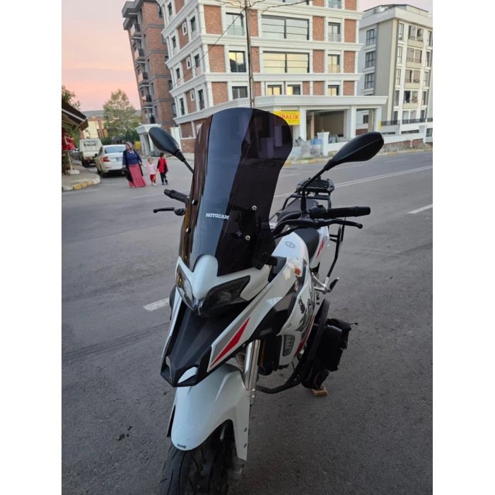 Benelli TRK 251 modelleriyle uyumlu olarak tasarlanmış bu siperlik ön cam, sürüş esnasında görüş açınızı genişletirken rüzgar ve hava koşullarına karşı koruma sağlar. 56 cm uzunluğunda ve 4 mm kalınlığında olan bu cam, dayanıklı malzeme kullanılarak üretilmiş olup, uzun ömürlü kullanım sunar. Montajı kolaydır; delme veya ek adaptasyon gerektirmeden birebir uyum sağlar ve plug&play özellikte tasarlanmıştır. Malzeme ve işçilik kalitesi, güvenlik ve dayanıklılığı ön planda tutularak seçilmiştir, böylece sürüş konforunuzu artırır ve görüşünüzü net tutar. Ürün, modern ve şık siyah renk seçenekleriyle motosikletinizin estetiğine uyum sağlar. Rüzgarın yönünü etkili biçimde yönetirken, görüş açınızı geniş tutarak daha güvenli bir sürüş deneyimi sunar. Güncel model ve yıllar arasında değişen uyumluluk detayları göz önünde bulundurularak tasarlanmıştır, böylece sorunsuz kullanım sağlar.