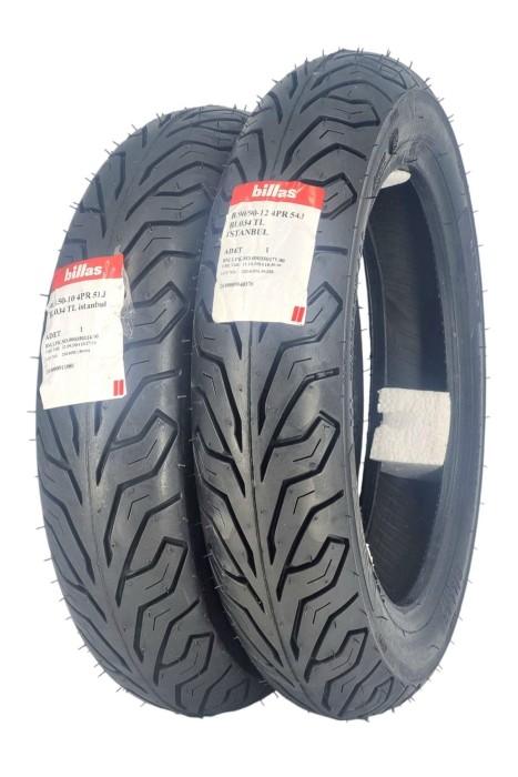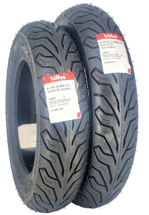 Billas Set 90/90-12 Ve 100/90-10 Bl034 Tl 4Pr Motosiklet Lastiği Ön Arka Takım