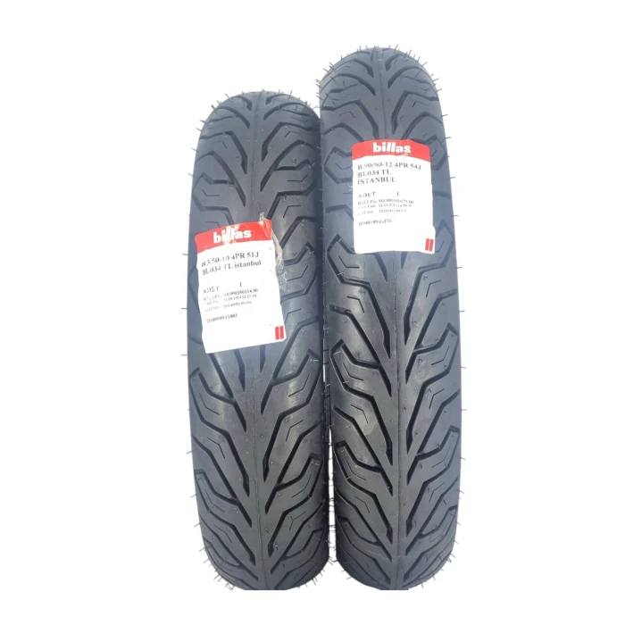 Billas Set 90/90-12 Ve 3.50-10 Bl034 Tl 4Pr Motosiklet Lastiği Ön Arka Takım