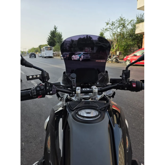 BMW R 1300 GS 2023-2025 modelleriyle uyumlu olan bu siyah ön cam siperlik, motosikletinizin görüş açısını genişletirken rüzgar akımını kontrol altında tutar. 4 mm kalınlığındaki dayanıklı malzemesi, uzun süreli kullanımda şekil ve dayanıklılık sağlar. Montajı, delme veya ekipman gerektirmeden, plug&play sistemi sayesinde kolayca gerçekleştirilebilir; birebir uyum sağlar. Bu sayede, sürüş sırasında daha fazla konfor ve güvenlik deneyimi sunar. Ayrıca, yüksek kaliteli yüzey işçiliği sayesinde estetik görünümünü korur ve motorunuzu birçok farklı hava şartında koruma altına alır. Rüzgar direncini ve görüş alanını optimize ederek, özellikle uzun ve konforlu sürüşlerde önemli avantajlar sağlar.