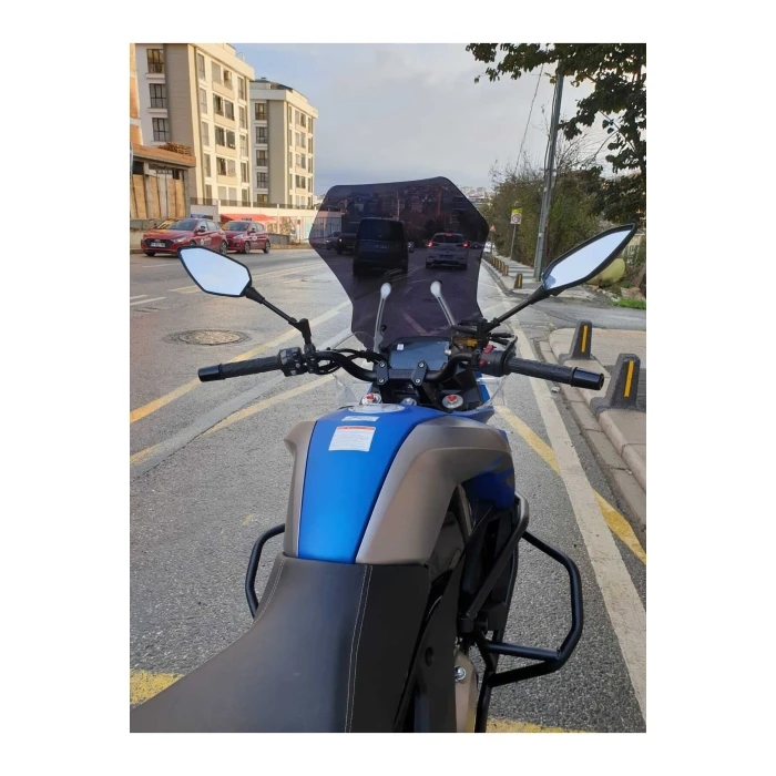 CF MOTO 650 MT 2025 model motosikletler için özel olarak tasarlanmış olan bu ön cam siperlik, yüksek kaliteli 4mm dayanıklı cam malzeme kullanılarak üretilmiştir. Siyah renk seçeneği, estetik görünümün yanı sıra güneş ışığına karşı da koruma sağlar. Ürün, montajında delme gerektirmeden, plug & play sistemiyle birebir uyum sağlar, böylece hızlı ve kolay bir şekilde monte edilir. Kaliteli işçilik ve malzeme seçimiyle, rüzgar ve hava koşullarına karşı dayanıklılık sunar, sürüş sırasında görüş alanını artırarak konfor sağlar. Darbe dayanımı ve uzun süreli kullanım açısından güvenlik odaklı tasarlanmış olup, hafifliği sayesinde sürüş konforunuzu olumsuz etkilemez.