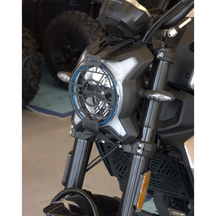 CF Moto CL-X 250 Far Koruma, güvenlik ve dayanıklılık odaklı tasarımıyla motosikletinizin ön farını koruma altına alır. Yüksek kaliteli malzemeler kullanılarak üretilmiş olup, sert darbeler ve çiziklere karşı dayanıklıdır. Montajı ise delme veya ek aparat gerektirmez; plug&play sistemi sayesinde kolayca ve birebir uyum sağlayarak monte edilir. Sert metal çerçevesi, darbeler karşısında koruma sağlar ve olası kazalarda farın zarar görmesini engeller.