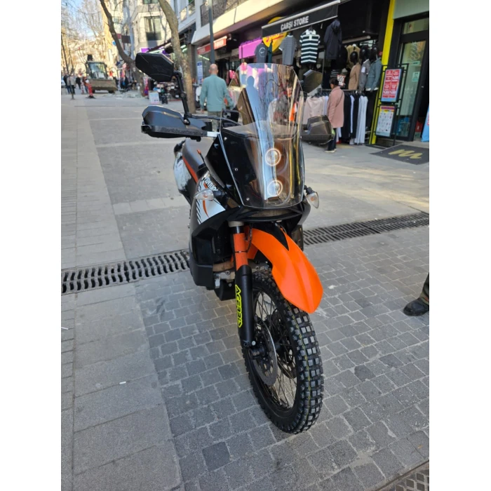 KTM 950 ve 990 Adventure modelleri için tasarlanmış olan bu replika siperlik ön cam, rüzgar yönetimini iyileştirirken görüş açınızı geniş tutar. 51 cm uzunluğunda ve 4 mm kalınlığında tam şeffaf polikarbonat malzeme kullanılmıştır, bu sayede dayanıklılık ve hafiflik bir arada sunulur. Montajı delme veya ek vidalama gerektirmeden, plug&play uyumuyla kolayca takılabilir; orijinal ekranınıza birebir uyum sağlar. Bu sayede sürüş esnasında rüzgar ve hava akımlarını kontrol altında tutarak, konforlu ve güvenli bir sürüş deneyimi sunar. Ayrıca malzemenin yüksek kalite işçiliği, darbelere karşı dirençli olmasını sağlar, uzun ömürlü kullanım sağlar. Ürün, görüş açılarını optimum seviyede tutacak şekilde tasarlanmış olup, dış etkilere karşı dayanıklıdır ve güvenliği artırır. Rüzgarı yönlendirme ve görüş alanını açık tutma konusunda önemli avantajlar sunar, böylece özellikle uzun ve zorlu seyahatlerde sürüş konforunuzu destekler.