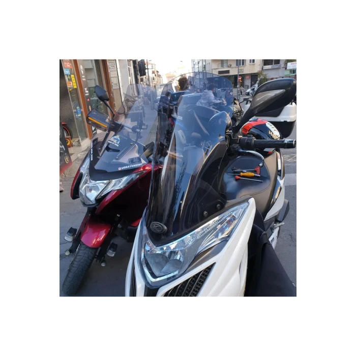 Kymco G Dink 150 ve 250i modelleri için tasarlanmış bu ön cam siperliği, 66 cm uzunluğuyla geniş görüş alanı sunar ve sürüş sırasında rüzgarı etkin şekilde yönlendirir. 4 mm kalınlıkta olan bu cam, dayanıklı malzemeden üretilmiştir ve yüksek dayanıklılık sağlar. Montajı oldukça kolaydır; delme gerektirmeyen, plug&play tasarımı sayesinde birebir uyum sağlar ve kısa sürede kullanılmaya hazır hale gelir. Malzeme işçiliği dikkatle yapılmış olup, uzun süreli kullanım için uygundur. Rüzgar ve görüş açılarını optimize ederek sürüş konforunu artırır. Ayrıca, dayanıklı ve güvenli yapısıyla çeşitli hava koşullarında kullanım imkanı sunar. Ürün, herhangi bir mekanik uyumsuzluk ya da ek montaj gerektirmeden, doğrudan takılabilir özellikte tasarlanmıştır.