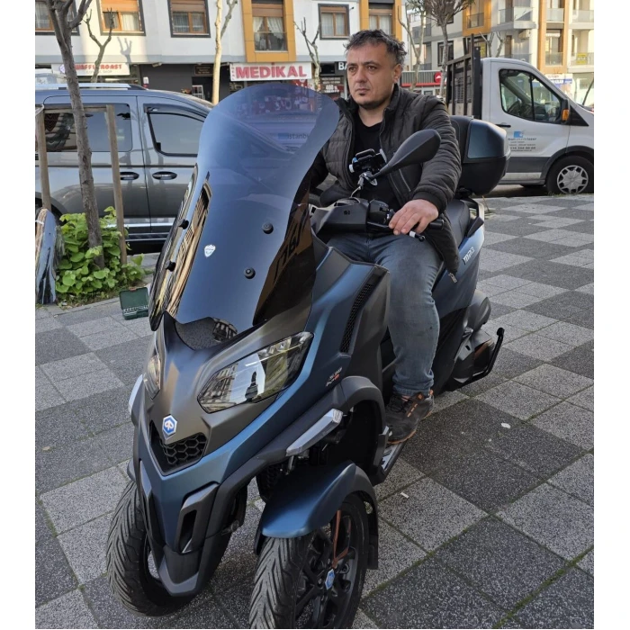 Piaggio Mp3 530 Siperlik Ön Cam 2023 2025 Model 72Cm Siyah Renkli 4Mm Uzun Cam
