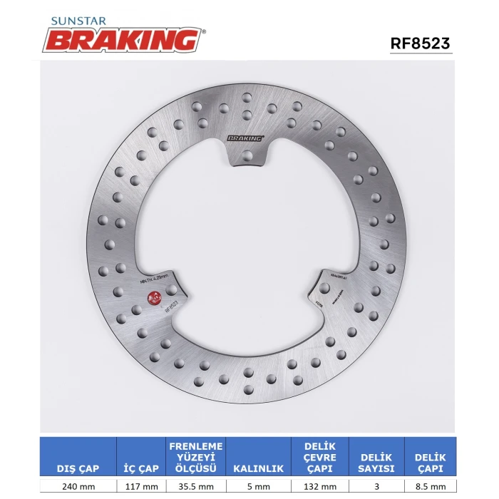 Braking markasının YAMAHA X-MAX 250 ve IRON MAX modellerine uygun olarak tasarlanmış yuvarlak arka fren diski, dayanıklı malzemeden üretilmiş ve yüksek performans standartlarına uygun olarak geliştirilmiştir. Ürün, özellikle fren sisteminizin güvenilirliği ve dayanıklılığı açısından özenle dizayn edilmiştir. Montaj sırasında delme veya ek adaptör gerekmez; plug&play sistemi sayesinde doğrudan birebir uyum sağlar. Bu sayede kullanıcılar, hızlı ve doğru kurulum yapabilir. Üretim aşamasında yüksek kalite malzemeler kullanılarak, uzun ömürlü kullanım ve güvenlik hedeflenmiştir. Her bir parça, sıkı kalite kontrol süreçlerinden geçirilmiş olup, orijinal parça ile aynı uyumluluk ve performansı sunar.