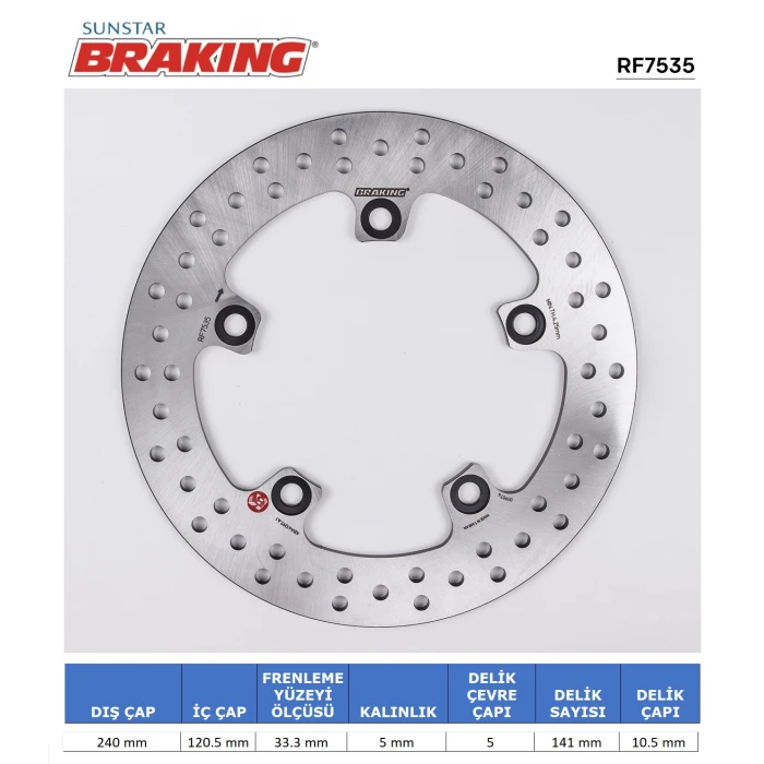 Braking markasının SUZUKI serisi motosikletler için tasarlanmış yuvarlak arka fren diski, yüksek dayanıklılık ve güvenlik sağlayan kaliteli malzemeden üretilmiştir. Bu ürün, orijinal uyum ve performans standartlarına uygun olarak, montajı kolay ve zaman kazandırıcı bir şekilde tasarlanmıştır. Delme işlemi gerektirmeden, plug & play montaj imkanı sunar, böylece kullanım sırasında ek uyumsuzluk veya montaj zorlukları yaşanmaz.