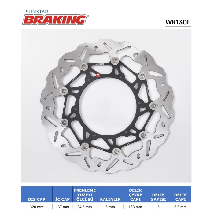 Braking markasının KTM Adventure 790, 890, 1050, 1190 ve 1290 modellerine uygun dalgalı ön performans fren diski, yüksek dayanıklılık ve güvenlik odaklı tasarımıyla öne çıkar. Malzeme kalitesi ve işçilik detaylarına önem verilerek üretildiğinden, zorlu sürüş koşullarında bile istikrarlı fren performansı sağlar. Montaj sürecinde delme işlemi gerekmediği için, plug&play uygulama avantajı sunar ve kolayca monte edilir. Disik, lesanol, paslanma ve aşınmaya karşı dayanıklı özellikleriyle uzun kullanım ömrü sunar. Bu ürün, sürüş güvenliği ve fren performansını artırmak isteyen motorcular için ideal bir seçimdir. Ürün, orijinal uyumluluk standartlarına uygun olarak tasarlanmış olup, motosikletinizle tam uyum sağlar ve yüksek performans gerektiren seyahatlerde güvenilirliği kanıtlar. Malzeme ve işçilik kalitesi sayesinde, farklı hava ve yol koşullarında da güvenle kullanılabilir.