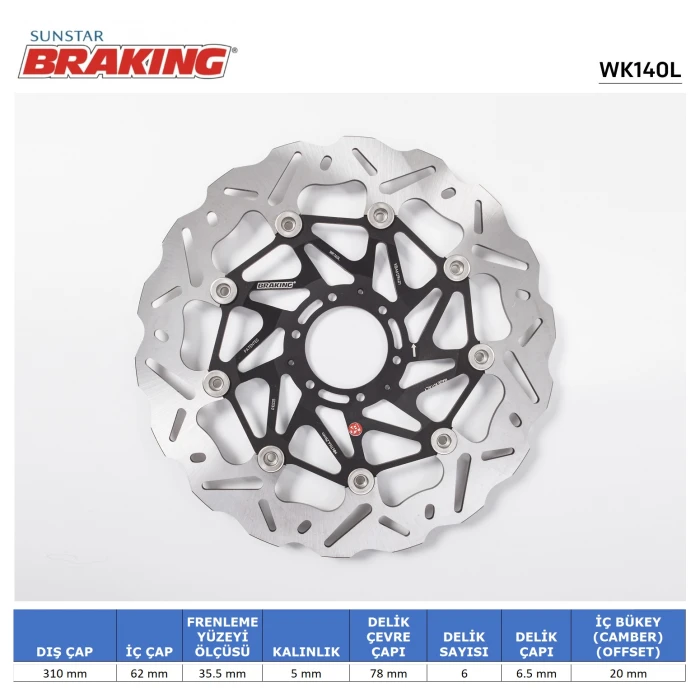 BRAKING markasının HONDA CRF 1000-1100 ve TRANSALP 750 modellerine uygun dalgalı ön performans fren diski, yüksek dayanım ve güvenlik standartlarına uygun olarak tasarlanmıştır. Bu ürün, orijinal fren diskleri ile birebir uyumlu olup, montajını kolaylaştırmak adına delme işlemi gerektirmez. Plug & play yapısı sayesinde, herhangi bir ek işlem veya aparat kullanmadan doğrudan montaj yapılabilir. Ürün malzeme olarak yüksek kaliteli çelikten üretilmiştir ve üstün işçilikle imal edilmiştir, böylece aşınma ve deformasyon karşısında dayanıklılık sağlar.