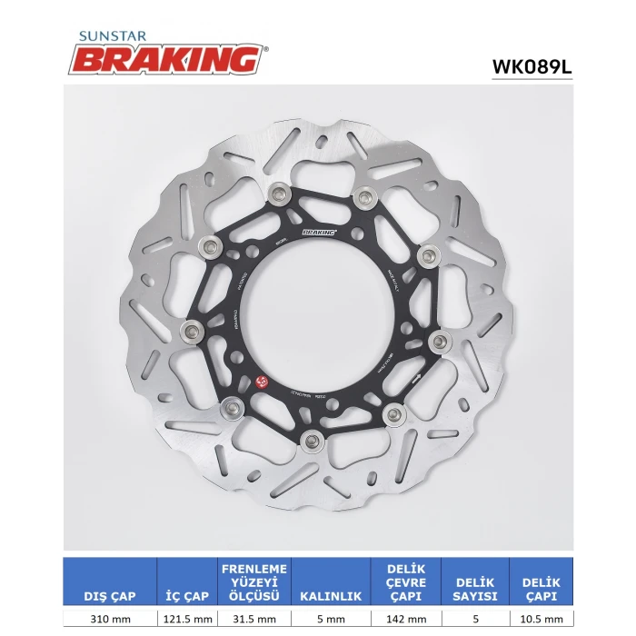 SUZUKI Hayabusa GSX-R 1300, B-KING, GSX FA, ve diğer uyumlu modeller için tasarlanmış olan SUZUKI DALGALI ÖN PERFORMANS FREN DİSKİ (SOL), yüksek dayanıklılık ve güvenlik sağlayan özel işçilikle üretilmiştir. Bu ürün, orijinal fren diskinize göre daha sağlam malzemeler kullanılarak, aşınma ve ısı dayanımı göz önünde bulundurularak tasarlanmıştır. Montaj sırasında delme gerektirmemekte, plug&play uyum ile kolayca monte edilerek zaman ve emek tasarrufu sağlar. Özellikle yüksek performans talebi olan sürücüler için, fren performansını artırmak adına güvenilir bir seçenektir.