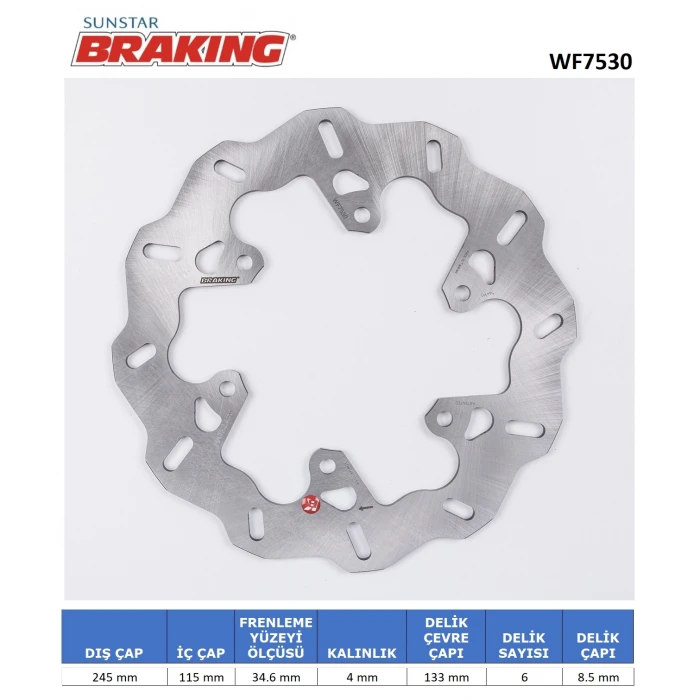 Braking firmasına ait dalgali arka fren diski, Ducati serisi motosikletleriniz için yüksek dayanıklılık ve güvenlik sağlar. Birebir uyumlu tasarımı sayesinde montajı hızlı ve pratik olup, delme gerektirmez, plug&play özelliktedir. Ürün, yüksek kaliteli malzeme kullanılarak üretilmiş olup, aşınmaya karşı dirençlidir ve uzun ömürlü performans sunar.