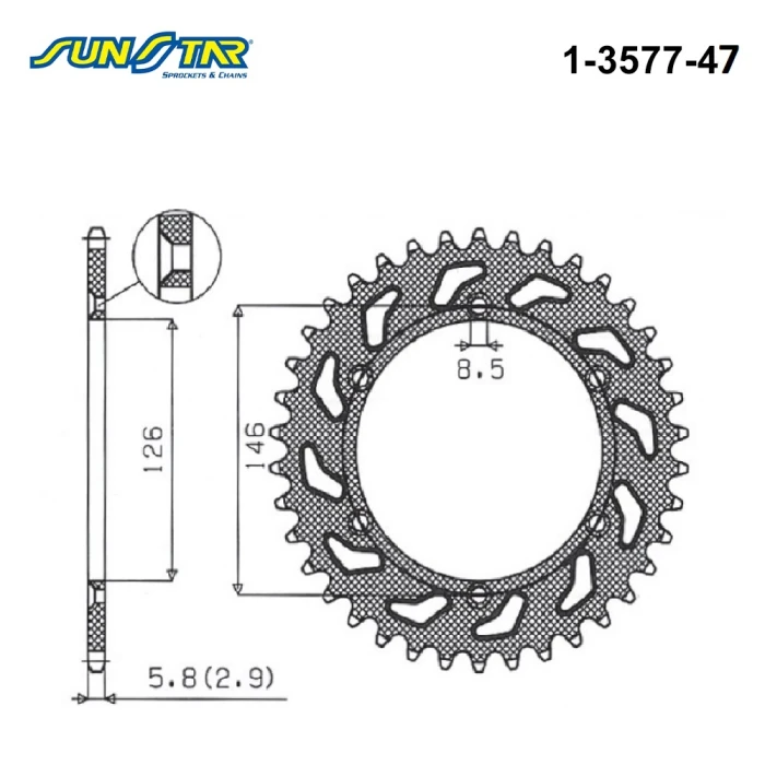 Sunstar markasına ait arka dişli, SUZUKI RMZ ve SUZUKI DRZ S modelleriyle tam uyum sağlar. Ürün, orijinal ekipmanla birebir uyumlu olacak şekilde tasarlanmış olup, montaj sırasında delme gerektirmez. Bu sayede hızlı ve güvenli bir kurulum sunar. Sağlam ve dayanıklı malzemeden imal edilmiştir, uzun kullanım ömrü ve yüksek performans sağlar.