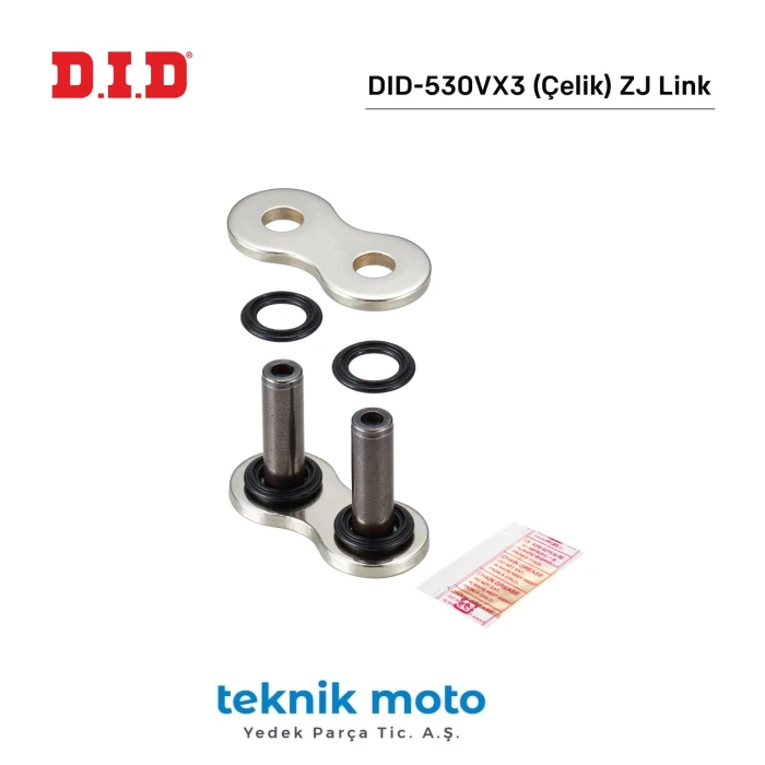 DID-530VX3 (Çelik) Z J Birleştici Bakla, motosiklet bağlantı parçalarında dayanıklılık ve güvenlik sağlayan yüksek kaliteli bir bileşendir. Tam uyumlu tasarımı sayesinde montaj sırasında delme veya ek işlemler gerekmez; plug&play sistemiyle kolayca monte edilir. Ürün, çelik malzemeden imal edilmiştir ve yüksek dayanım sunar, böylece uzun süreli kullanım ve güvenli sürüş sağlar.