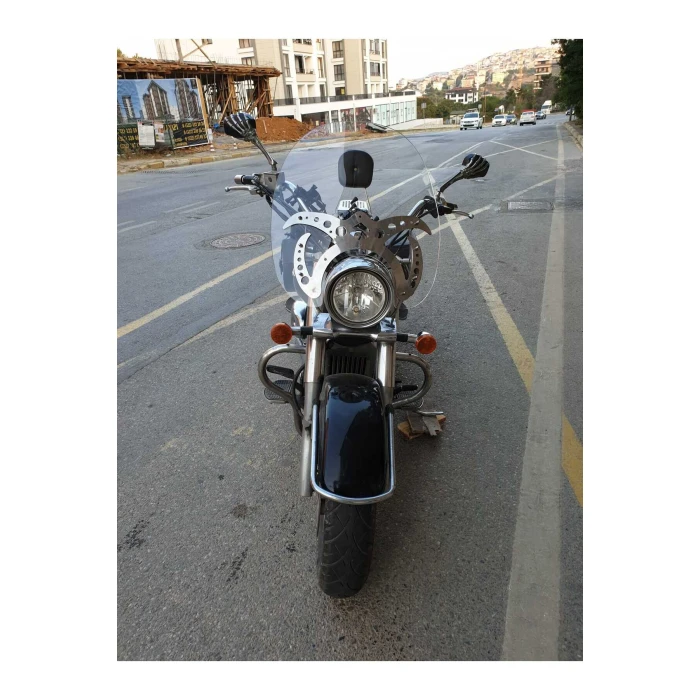 Bu şeffaf ön cam, Suzuki V VL C serisinin 2001-2013 modelleriyle uyumlu olarak tasarlanmıştır. Montaj sürecinde delme veya ek vida kullanımı gerektirmeyen plug&play yapısıyla kolaylık sağlar. Dayanıklı ve güvenli malzemeden üretilmiş olan bu ürün, uzun süre kullanımda bile formunu korur ve rüzgarla direncini artırır.