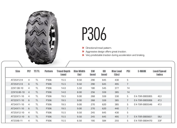 Wanda 22X10-10 P306 Master 4PR ATV arka lastik, yüksek dayanıklılık ve sağlam malzeme kullanımıyla öne çıkar. Üzerinde geliştirilmiş sırt deseni ve yapısı, zorlu arazi koşullarında bile güvenli sürüş deneyimi sunar. Ürün, bisiklet ve ATV'lerinizde güvenilirliği artıracak şekilde tasarlanmış olup, uzun ömürlü kullanım sağlar. Montaj aşamasında delme gerektirmez ve doğrudan uygun araçlara plug&play uyum gösterir. Bu lastik, özellikle uzun süreli kullanım ve zorlu arazi şartlarına dayanıklılık açısından tercih edilir.