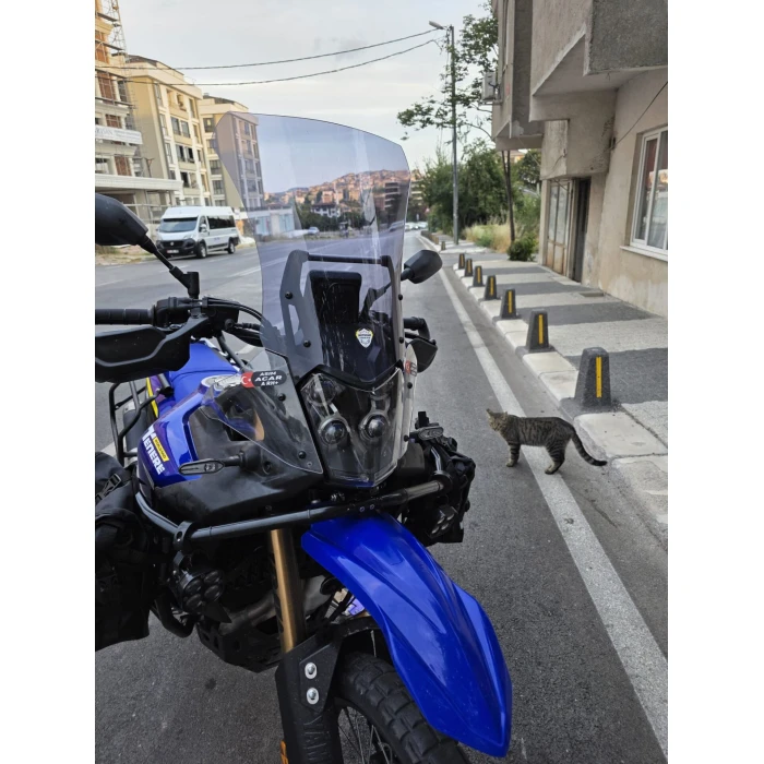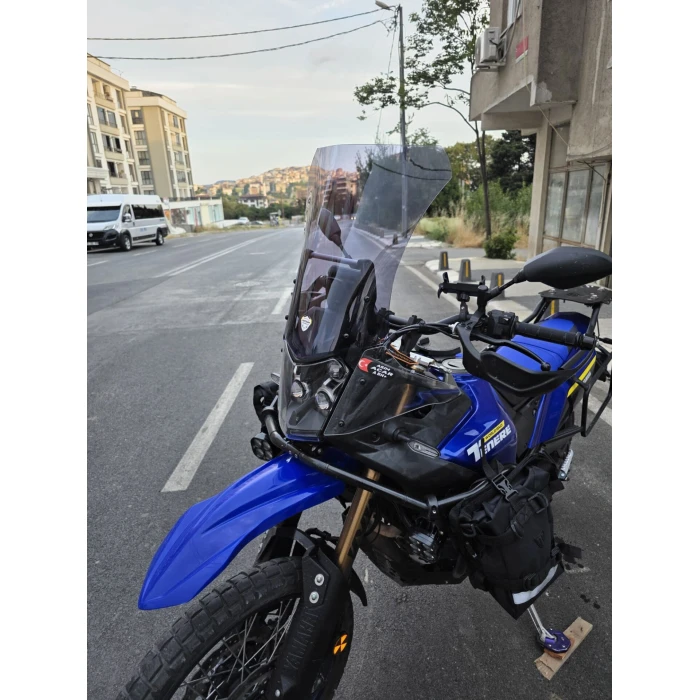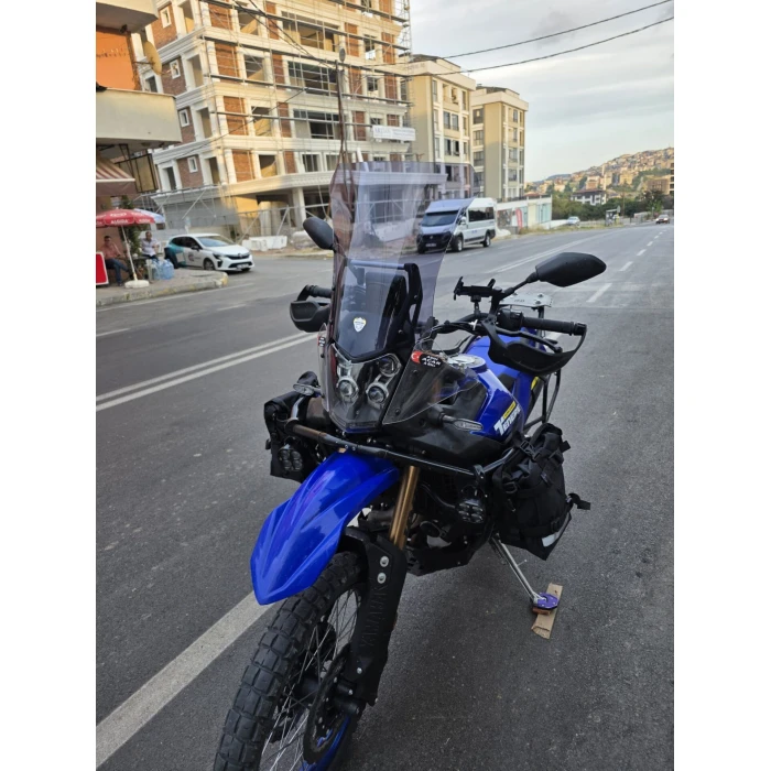 Yamaha Tenere 700 World Raid ön cam, 2023 ve 2024 modellerle uyumlu olarak tasarlanmış, dayanıklı ve güvenilir bir koruma parçasıdır. 45 cm uzunluğu ve 4 mm kalınlığı ile rüzgarın etkisini azaltırken, sürüş sırasında görüş alanını geniş tutmaya yardımcı olur. Malzeme kalitesi yüksek akrilik plaktan üretilmiş olup, yoğun kullanıma dayanıklı ve uzun ömürlüdür. Ürün, montaj açısından basit olup delme gerektirmeden plug&play sistemi ile birebir uyum sağlar. Bu sayede güvenli ve hızlı bir montaj gerçekleştirilebilir. Ürün, görüş açıklığını optimize eden tasarımıyla, sürüş konforunu artırırken rüzgar ve hava akımlarını kontrollü şekilde yönlendirir. Ayrıca, füme renkli tasarımı motosikletin estetiğine şık ve bütünsel bir görünüm kazandırır. Üretim aşamasında titizlikle yapılan işçilik ve malzeme seçimleri, ürünün dayanıklılığı ve yüzey kalitesi açısından güvenilir olmasını sağlar. Yamaha Tenere 700 World Raid modellerine uygun olan bu ön cam, uzun vadeli kullanım ve konfor odaklı bir alternatif sunar.